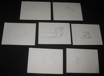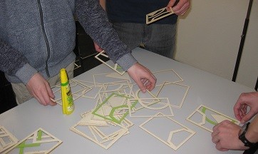 Ausstellung bot. Im Anschluss konnten die TeilnehmerInnen durch Übereinanderschichtung ein dreidimensionales Modell aus mehreren, vorgebenen Grundformen in Rahmen und in zwei Farben