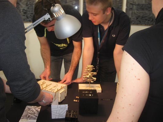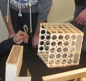 Milena Stavric und Florian Schober leiten im WS 2015/2016 die Lehrveranstaltung "Darstellungsmethoden". Mithilfe digitaler Techniken und Lasercutter-Fabrikation setzen Architektur-Studierende kreative Ideen von Elementen eines ihnen zugewiesenen Baumes (Wurzel, Stamm, Rinde, Blatt, etc.) in zwei Schichtmodellen um und gestalten anschließend ein interaktives Designprodukt. Vor dem Hintergrund konkreter und konstruktiver Gestaltung stellen sich die vorliegenden Arbeiten der allgemeinen Diskussion, debattieren die Konkurrenz von freier und digitaler Formgebung und stellen die Auswahlkriterien von direkter Anschauung (z.B. das Blatt) und der Metapher (z.B. die Wäschekluppe) dem Publikum zur Diskussion.