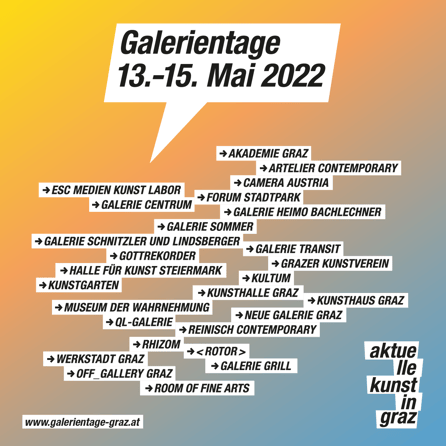 Das gesamte Programm der akig Galerientage finden Sie hier: https://www.galerientage-graz.at/!