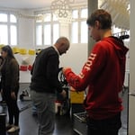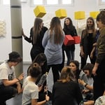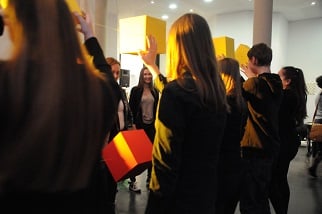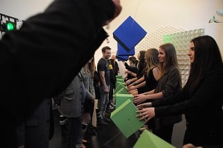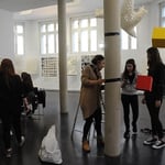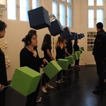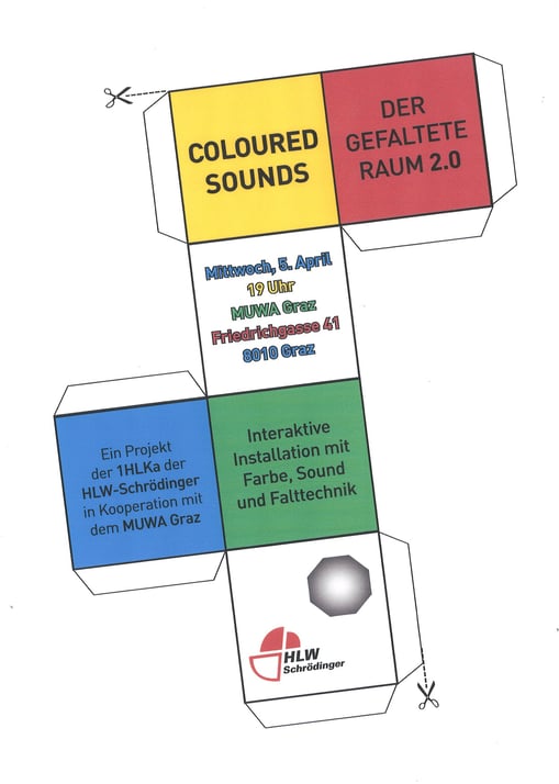 Im Rahmen eines Kooperationsprojektes der HLW Schrödinger mit dem Museum der Wahrnehmung MUWA konzipierten die SchülerInnen der 1HLKa gemeinsam mit den LehrerInnen FOL Ingrid Eicher, Dipl.- Päd., Prof. MMag. Judith Huber, MA UP, Prof. Mag. Brigitte Schlick und Prof. Mag. Markus Sturm eine interaktive Installation mit Farbe, Sound und Falttechnik und luden zur Präsentation am 5. April 2017 ins Museum der Wahrnehmung ein. Nach der Begrüßung von Museumsleiterin Magistra Eva Fürstner und Schuldirektorin Professorin Magistra Margareta Petermandl konnten die BesucherInnen im Rahmen der interaktiven Performance mit speziellen Klangkörpern ausgestattet und mittels Anweisung der SchülerInnen mitmachen!