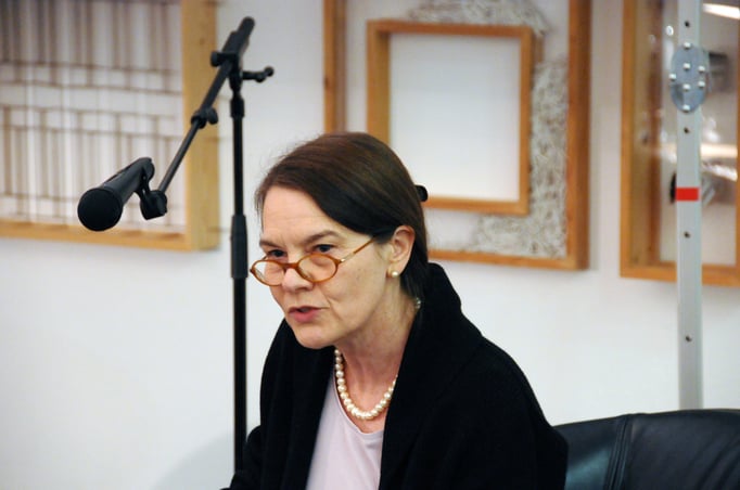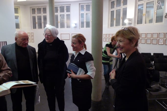 Dr. BETTINA REIMERS, Archivleiterin Bibliothek für Bildungsgeschichtliche Forschung in Berlin spricht im Rahmen der Eröffnung am 4. Dezember 2014 zum Thema "EIN UNERFORSCHTER SCHATZ – Verborgenes Archivmaterial auf Ausstellungsreise: Friedrich Wilhelm Fröbel und seine Spielgabe" und Prof. EUGEN GOMRINGER, Gründer des Institutes für Konstruktive Kunst und Konkrete Poesie in Rehau über "DIE KUNST IST EINE ALTE DAME – Eine Theorie sucht ihre Grundlagen: Das Spielmaterial von Friedrich Fröbel – eine frühe Vorwegnahme des Experimentierens mit konstruktiven Formen".