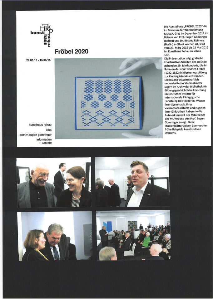 Im Anschluss an die Präsentation im Grazer MUWA wurde die Ausstellung "FRÖBEL 2020" im IKKP Institut für Konstruktive Kunst und Konkrete Poesie - Kunsthaus Rehau - http://kunsthaus-rehau.de/IKKP_ie.htm - gezeigt!