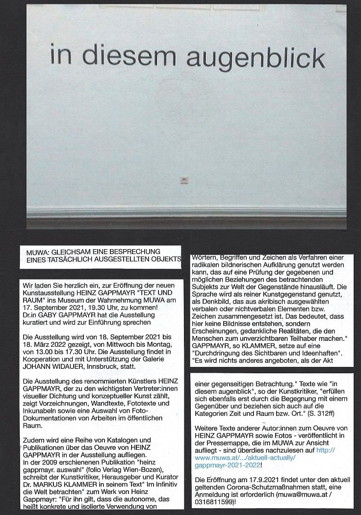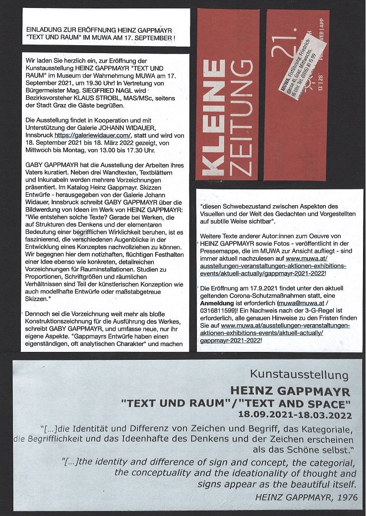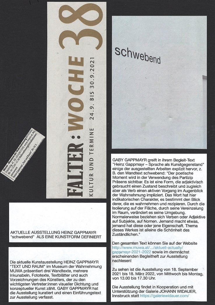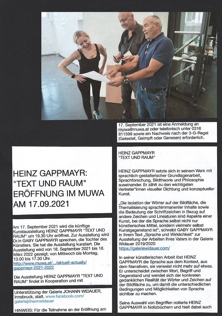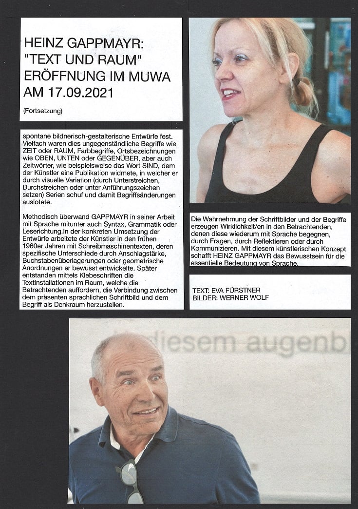 ORF-TV und Radiobericht zur Kunstausstellung HEINZ GAPPMAYR "TEXT UND RAUM" im MUWA von LUKAS MEISSL !