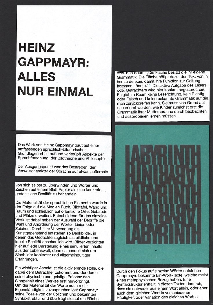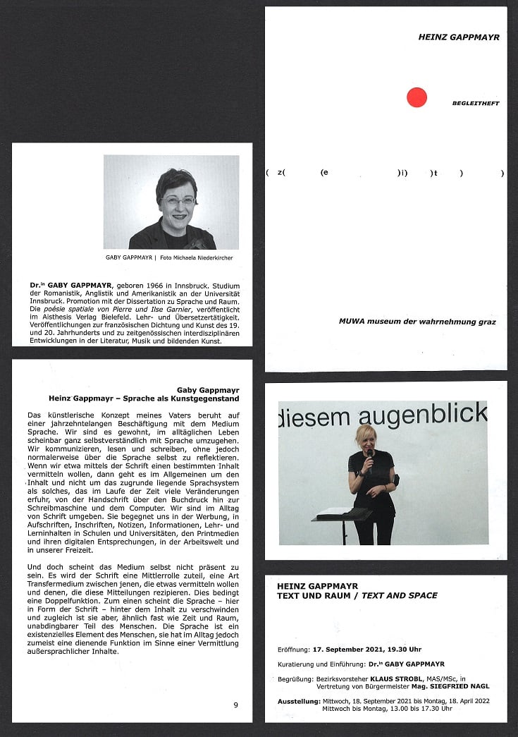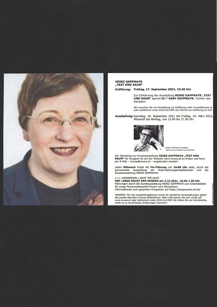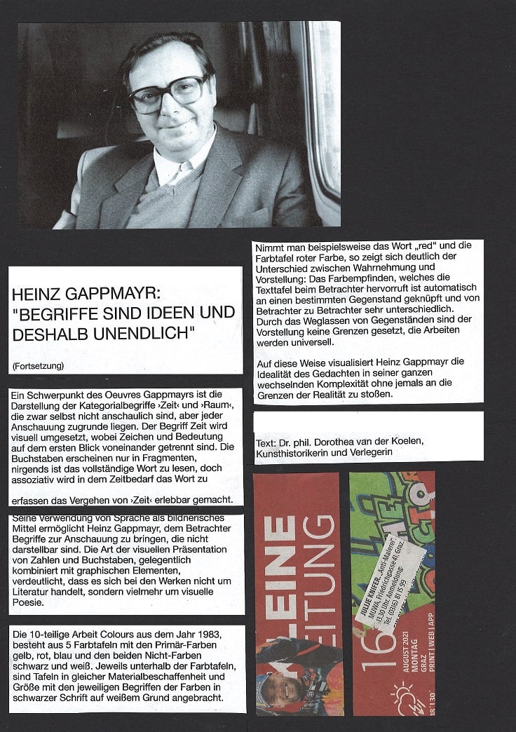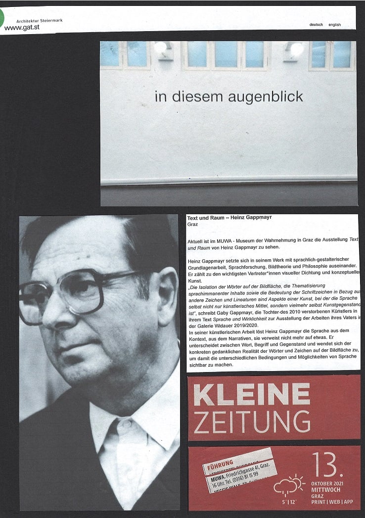 HEINZ GAPPMAYR setzte sich in seinem Werk mit sprachlich-gestalterischer Grundlagenarbeit, Sprachforschung, Bildtheorie und Philosophie auseinander. Er zählt zu den wichtigsten Vertreter*innen