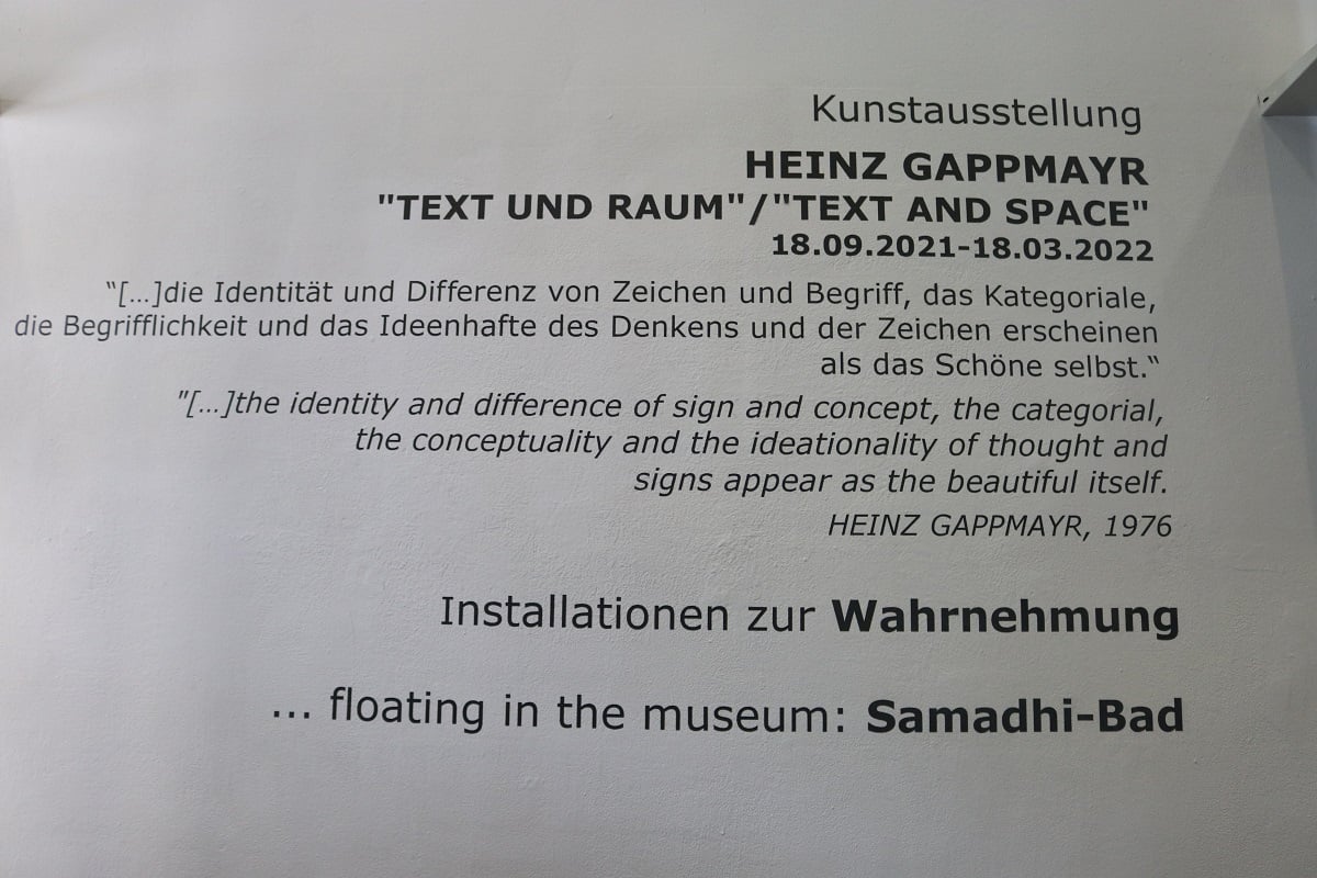 The perception of the written images and the concepts create reality(ies) in the viewers, which they in turn fill up with language, by asking questions, by reflecting or by communicating. With this artistic concept, HEINZ GAPPMAYR creates awareness for the essential meaning of language.