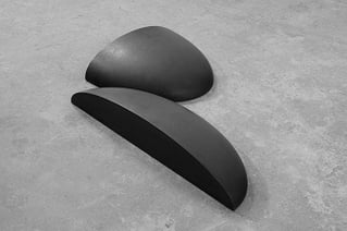 "Schnitte öffnen geometrische Grundkörper und erzeugen Leerstellen, fiktives Volumen im Raum. Positiv-Negativ-Formen stehen zueinander in einem Spannungsfeld. Die skulpturale Vorstellung steht im Verbund mit Material und Bearbeitung. Im Arbeitsprozess erfährt das Material Stein eine sinnlich, wahrnehmbare Präsenz. Der Stein ruht in sich und öffnet sich nach außen. Bodenskulptur bedarf des aktiven Betrachters. Wechselnde Standorte schaffen neue Erfahrungen."