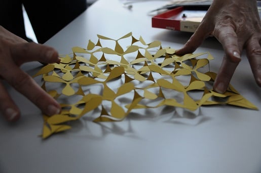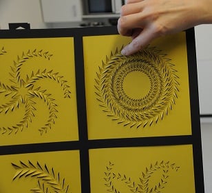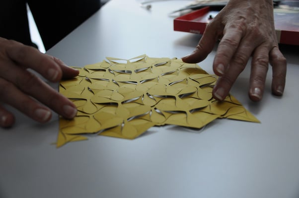 Kirigami ist eine japanische Kunst, die das Schneiden und das Falten von Papier - ohne Kleber - kombiniert. Aus einem Stück Papier gefertigt, ermöglicht diese Methode einen ungeahnten Formenreichtum bis hin zur Entwicklung und Umsetzung beweglicher 3D Strukturen - mittels moderner Technologie wie CAD und Lasercutter.