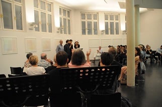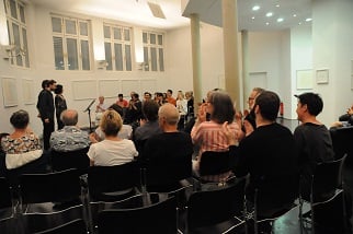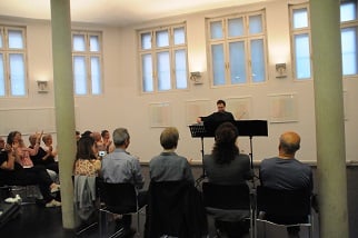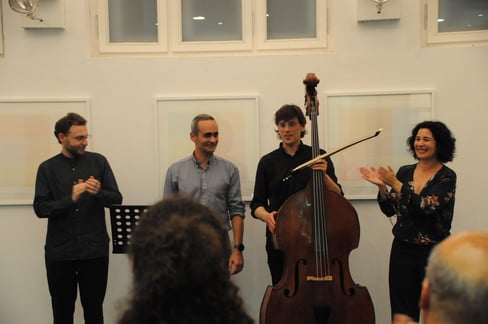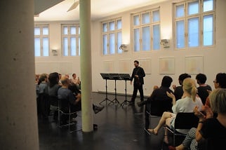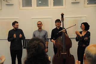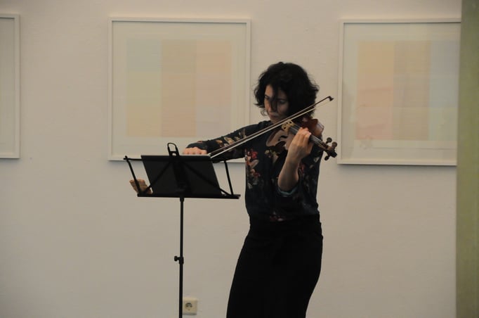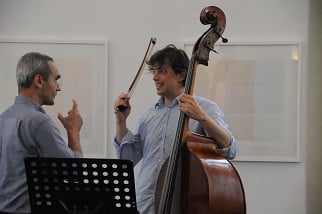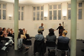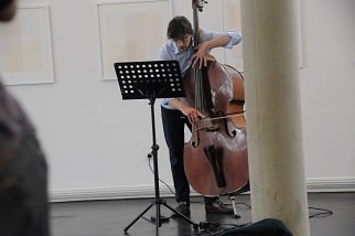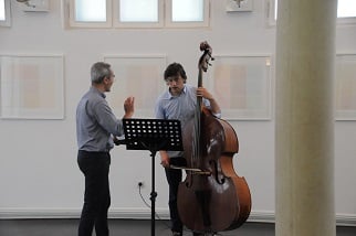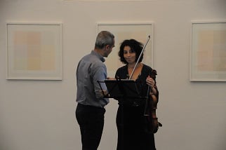 ANNA SPINA, Viola, DARIO CALDERONE, Kontrabass und LORENZO DERINNI, Violine, interpretierten am 31. Mai 2017 im Rahmen von open music Kompositionen von GIORGIO NETTI in dessen Anwesenheit vor einem begeisterten, teilweise weit angereisten Publikum inmitten der Ausstellung von GÜNTER WALTER "PARALLELEN" im Museum der Wahrnehmung.
