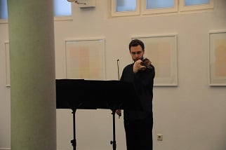 Bei "open music" werden mit Anna Spina und Dario Calderone zwei Langzeitvertraute des Komponisten zwei paradigmatische Werke in Österreich (erst-)aufführen; und mit dem jungen, auch aus seiner Mitwirkung beim Ensemble Schallfeld in Graz bestens bekannten Geiger Lorenzo Derinni – er arbeitet auf Anregung von "open music" für diesen Abend erstmals mit dem Komponisten – wird die Perlenkette an Solostücken komplettiert.