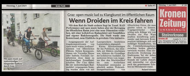 Am 30. 5. 2021 führten 6 Radperformer*innen neue, von open music beauftragte