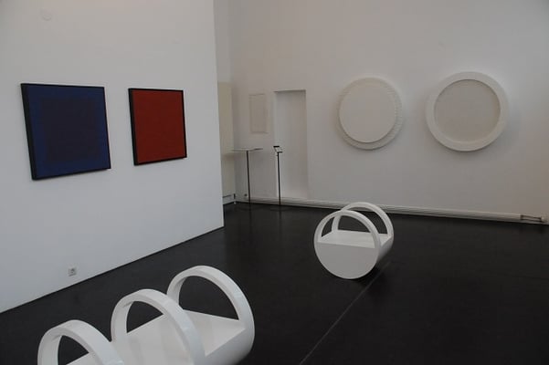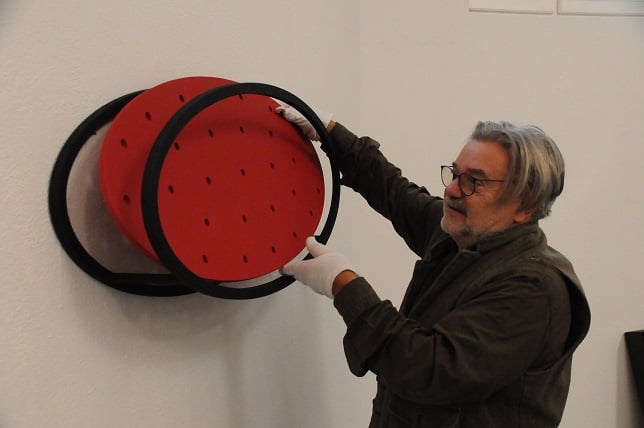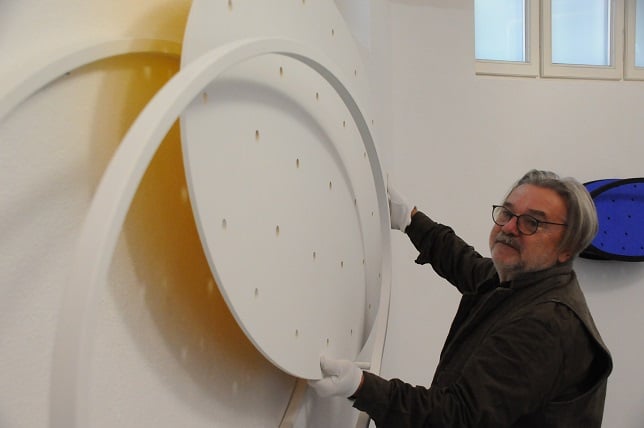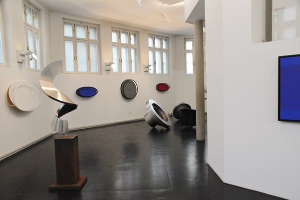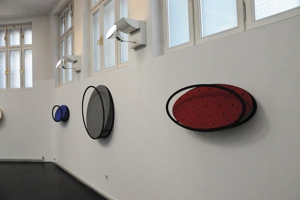 The circle arises in his minimalist execution as a point in the works of REINHARD ROY, as a proliferation of form to perceive as a surface, sometimes suggesting depth or even movement on a two-dimensional surface. He presents himself as a real object to be circled by visitors. The circular form can be created as an elevation, an indentation or a cut-out, it can go far away from the round to the ellipse up to the line, as well as returning to the circle. In this way a grouping, an arrangement, a weighing between forms inside the work or inside the series can take place with the goal of designing the individual elements into a whole.