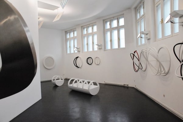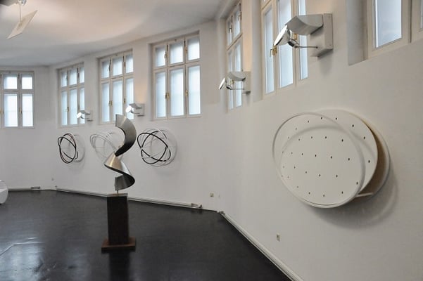The artist implements his ideas with different materials. Among them are paper, cardboard, MDF and steel and he operates with different surface qualities. He uses classical tools as well as the computer to transform and to test a rotating body from a two-dimensional object. The artist shows in his exhition "THINKING A CIRCLE" in the Museum of Perception a number of works of different periods of creation.