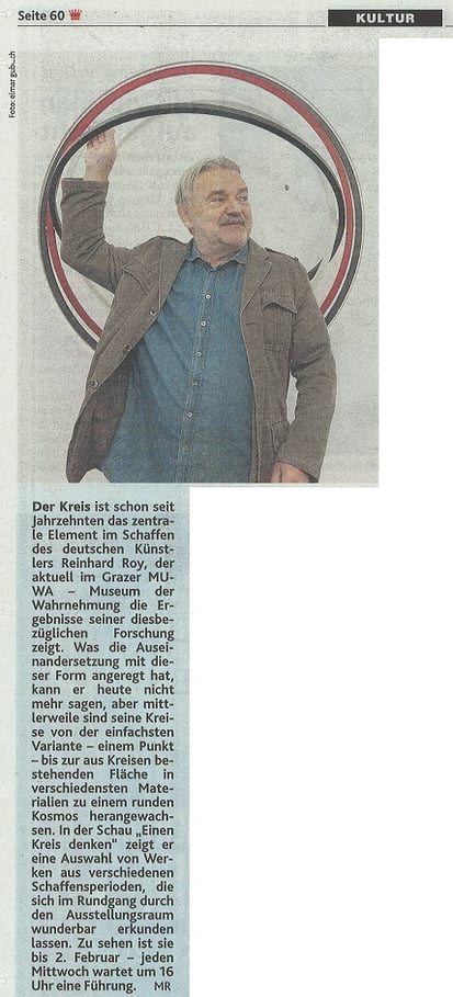 Zur Ausstellung von REINHARD ROY "EINEN KREIS DENKEN" hat Kulturredakteurin KIRSTEN HAUSER vom ORF Steiermark einen Bericht gestaltet, gefilmt von Kameramann JOSEF KRAINER jun.