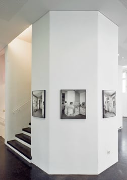 The alternated examination of architecture, setting and marks of use within a picture creates tension, no item is permanently focused: mural damages, varying ceiling heights, segments of the floor plan, posters getting detached from the wall or a towel stuck. Afterwards the gathering of these precisely documented sections of space in this exhibition enables a fragmentary joining and thus an imagination of space - less than an entire space but like a building to be recognized, room after room, in the process of walking through. Finally the comparison of the documented sections of space with the actual situation can be started.