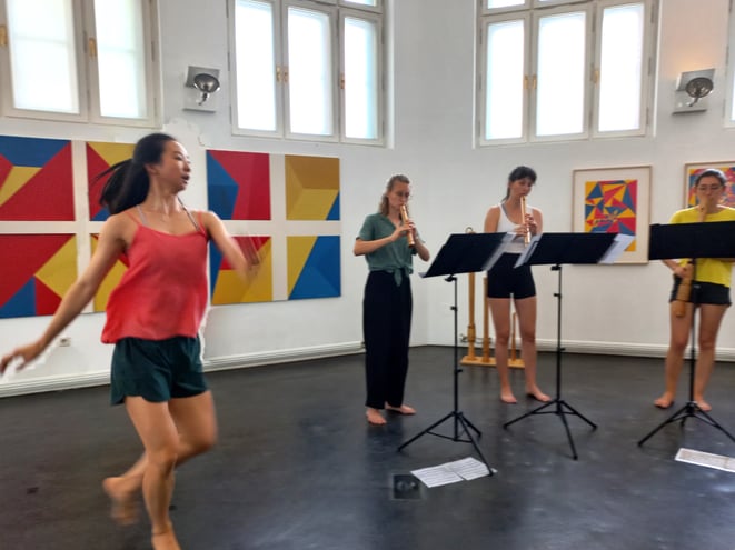 In Klanginstallationen begegneten sich Renaissancemusik, Improvisation und Elektronik. Die Musiker*innen sind im Konzert “Ausstellungsstücke”, die eine (Klang-)Welt aufbauten und im Laufe des Konzerts wieder zerfließen ließen.