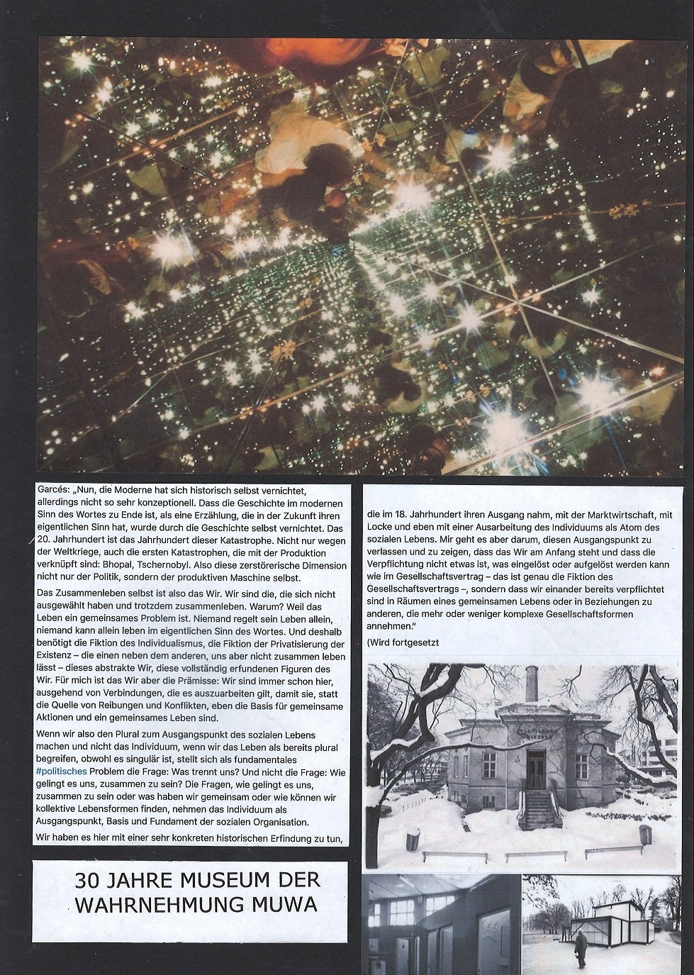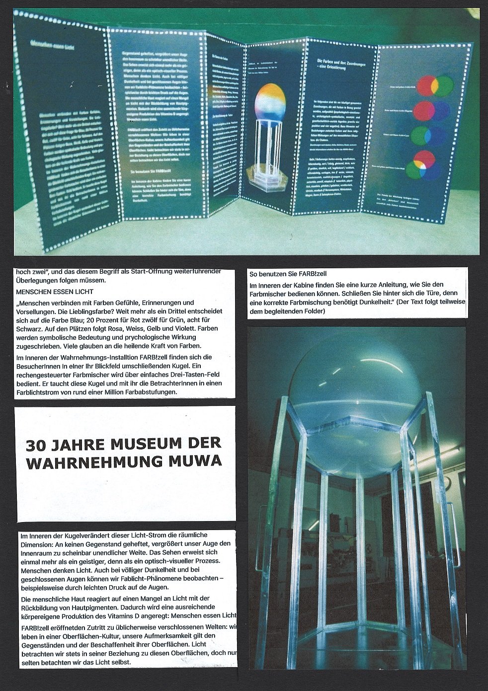 Anlässlich des 30jährigen Bestehens feiert das Museum der Wahrnehmung MUWA sein Jubiläum mit einer besonderen Ausstellung, die der Entstehung und der Entwicklung des Museums bis hin zu Perspektiven für die Zukunft dieses so besonderen Konzeptes gewidmet sein wird.