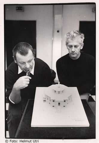 In 1990 WERNER WOLF founded the Museum of Perception MUWA, which was housed in a container architecture designed by the Innsbruck architect HELMUT REITTER, the Café Paradox, in the Stadtpark Graz. Thirty years ago, university professor Dr. MANFRED HUSTY carried out the planning, calculation and computer presentation of the Café Paradox, which was the world's largest Ames room inside at the time. The opening in 1990 took place during the steirischer herbst.