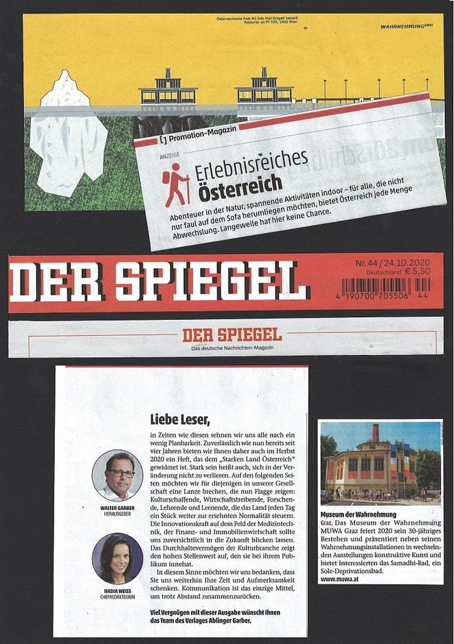 In der Ausgabe 44 vom 24.10.2020 des Wochenmagazins DER SPIEGEL ist ein Kurzbericht über das Museum der Wahrnehmung MUWA erschienen:
