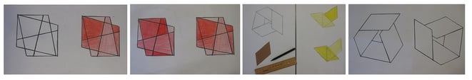 In der Zusammenschau der Ergebnisse aller TeilnehmerInnen entsteht eine kleine Präsentation unterschiedlichster Formen-Überlagerungen.