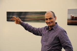 Eva Fürstner im Gespräch mit dem Künstler im Rahmen der Eröffnung am 14.9.2018