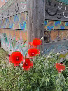 KW 30: Café Jakomini AuGartl-Hochbeete vor dem MUWA: Klatschmohn im Porträt !
