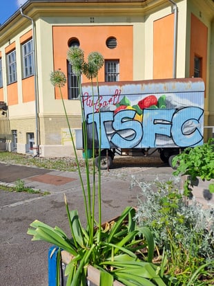 KW 28: Blühendes MUWA-Dach und ein Blick auf die Café Jakomini AuGartl-Hochbeete vor dem MUWA !