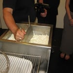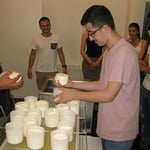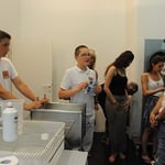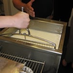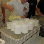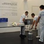 Drei Schüler der Fachschule für Land- und Forstwirtschaft Alt-Grottenhof bereiteten indessen im Museum alles für die Präsentation der Käseherstellung her, gemeinsam mit ihrem Lehrer Diplompäd. Ing. Karl FRAISSLER. Die Schüler erklärten den gesamten Ablauf der Frischkäseherstellung und die SchülerInnen der Medien HAK Graz konnten tatkräftig mitmachen und vom Frischkäse und der Molke probieren!