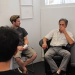 - Der Künstler Timothy Mark präsentierte ein bereits im Augarten umgesetztes Kunstprojekt und erläuterte seine Idee einer Sozioskulptur, welche im Projektzeitraum entstehen soll und zeigte eine kurze Performance mit Anna Altmanninger.
