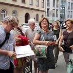 Den ersten Innenhof-Rundgang vor dem Sommer leitete KLAUS STROBL, der eine Gruppe von Interessierten gemeinsam mit GERTRAUD PRÜGGER - beginnend am Dietrichsteinplatz - in einige, sehr unterschiedlich gestaltete Innenhöfe führte.