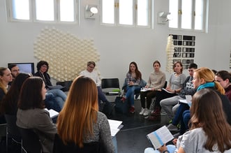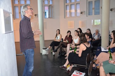 Im Rahmen der von Magistra EVA SEIDL geleiteten Lehrveranstaltung Deutsch/Sprache und Kultur des Bachelorstudiums Transkulturelle Kommunikation am Institut für Theoretische und Angewandte Translationswissenschaft an der Universität Graz (https://translationswissenschaft.uni-graz.at/de/) setzten sich Studierende aus Kroatien, Serbien, Slowenien, Spanien und der Ukraine anhand eines Fragenkatalogs mit dem Projekt CAFÉ JAKOMINI auseinander und diskutierten am 27. März 2017 im MUWA mit den Projektverantwortlichen Eva Fürstner und Klaus Strobl hinsichtlich der Themen, der Veranstaltungen und der Öffentlichkeitsarbeit.