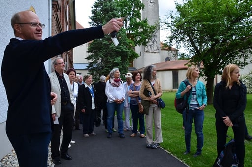 Im Anschluss wanderte die Gruppe zur Pfarre Münzgraben (http://mj.graz-seckau.at/), wo Pfarrer Harald Janser um 11:00 Uhr durch die Pfarre führte und die Historie der Pfarre in einer bebilderten Präsentation aufrollte, die TeilnehmerInnen aber auch etwas über die sehr aktive Jungschar-Gruppe, über die Gruppe der jüngsten und älteren Pfarrmitglieder einiges erfuhr oder über wichtige, soziale Projekte wie bespielsweise den Guatemala-Kreis oder die Pfarr-Caritas, aber auch über das vielfältige Kunst- und Kulturprogramm.