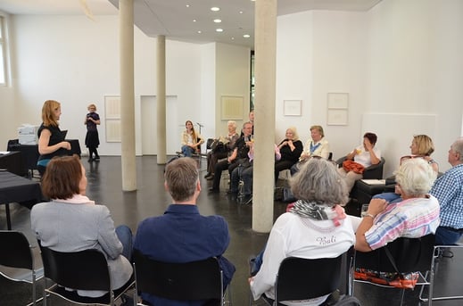 Schlussendlich endete der Rundgang um 15.30 Uhr im Museum der Wahrnehmung, wo Museumsleiterin Eva Fürstner über die Entstehung des Gebäudes und seine frühere Funktion als Tröpferlbad berichtete, vom Programm des Museums der Wahrnehmung mit seinen Ausstellungen, Veranstaltungen und dem Vermittlungsprogramm erzählte und die TeilnehmerInnen noch die Gelegenheit hatten, durch das Museum zu streifen, sich die Ausstellung von Günter Walter anzusehen, die Wahrnehmungsinstallationen auszuprobieren und auch einen Blick ins Samadhi-Bad zu werfen.