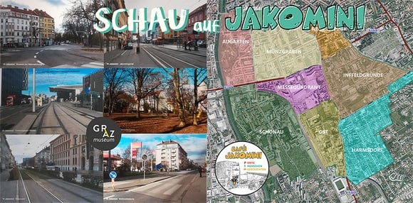 „SCHAU auf JAKOMINI“ wird sich nicht nur eingehend mit den acht, zum sehr unterschiedlichen Stadtteilen innerhalb des Bezirk Jakomini beschäftigen, sondern diese Ausstellung soll durch begleitende Veranstaltungen den Bürger_innen die Möglichkeit geben, selbst Bezirksforschung zu betreiben.