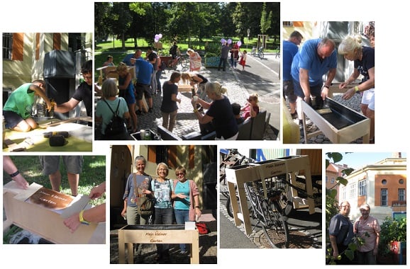 ausgelegt und schließlich noch beschriftet! Nach Hause transportiert wurden einige Hochbeete sogar - schiebenderweise natürlich - mit dem Fahrrad! Den Bausatz oder fertig zusammengebaute