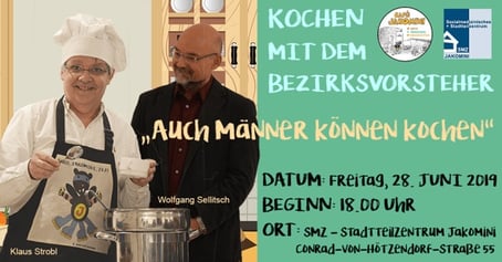 Nach dem erfolgreichen Kochen mit dem Bezirksvorsteher von Jakomini KLAUS STROBL im November 2018 mit über 50 Gästen im Stadtteilzentrum Jakomini, gibt es die nächste kulinarische Zusammenkunft im STZ im Juni dieses Jahres!