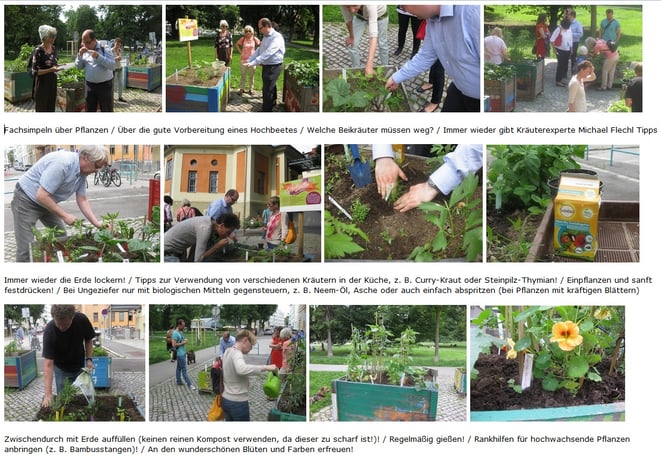 Der Grazer Kräuterexperte MICHAEL FLECHL ist seit dem Start des von KLAUS STROBL initiierten Projektes Café Jakomini 2017 mit dabei, hat im Rahmen der zweiten AUGARTLN-Aktivität am 5.6.2019 viele Tipps zum Bepflanzen von Hochbeeten gegeben, Fragen beantwortet und gemeinsam mit den Teilnehmer_innen die Hochbeete vor dem Museums der Wahrnehmung gejätet, fehlende Pflanzen ergänzt, biologische Möglichkeiten zur Bekämpfung von Schädlingen und Tipps für herrliche Gerichte mit den vor Ort wachsenenden Kräutern und Gemüsesorten gegeben.