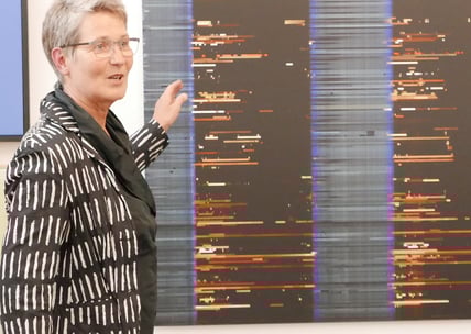 Künstlerin, Kuratorin und Hochschuldozentin Dr.in SABINE RICHTER berichtete in ihrem Ausstellungsrundgang im Rahmen der Reihe WAHRNEHMUNG GESTALTET DIE WELT - an welchem u.a. Kulturstadtrat Dr. GÜNTER RIEGLER teilnahm - vom Entstehen dieser ersten Gruppen-Ausstellung im Museum der Wahrnehmung MUWA zu Ehren EUGEN GOMRINGERS, zu der 27 Künstler_innen eingeladen wurden, Arbeiten zu präsentieren. In der Darlegung einzelner künstlerischer Positionen ließ SABINE RICHTER immer wieder differenzierte Querverbindungen und Dialoge zwischen den unterschiedlichen Positionen hinsichtlich Form, Farbe, Oberfläche oder Materialität einfließen, aber auch wie ein Dialog zwischen Werk und Betrachter_innen entstehen kann. Sie stellte darüberhinaus auch die Bedeutung EUGEN GOMRINGERS für die Szene der konkreten, konstruktiven Kunst dar wie auch seine Bedeutung als Erfinder der konkreten Poesie. Die Ausstellung zeigt einige der Konstellationen GOMRINGERS.
