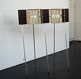 The installation in front of you can help you to find the right answer to this question. From everyday observation we know that in contrast to the drawing or the photograph of an object the mirror image of an object reverses left and right.